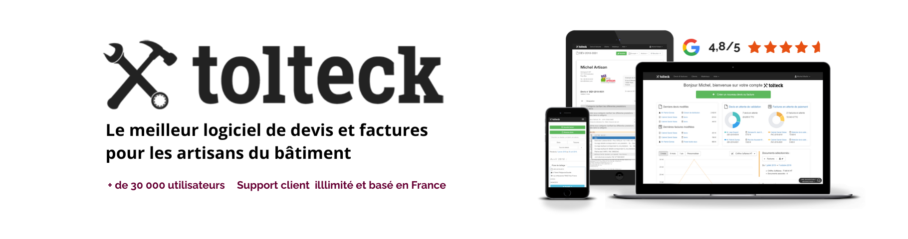 Tolteck - Tolteck un logiciel de devis et factures dédié aux artisans du bâtiment avec un support client illimité et qui est 100% conforme