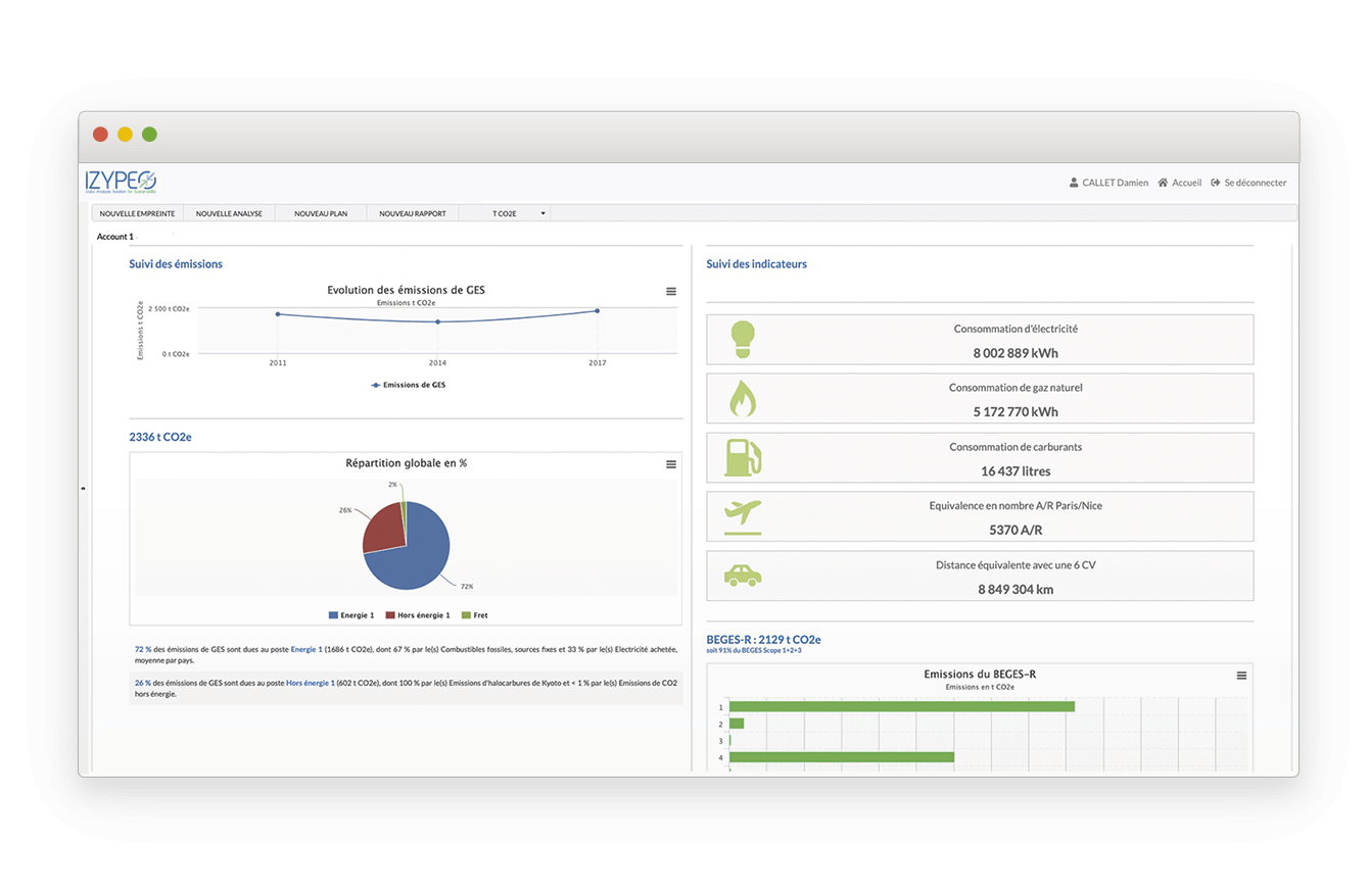 - Disposant de tableaux de bord permettant la comparaison de Bilans carbone ou encore l'affichage des informations selon le standard Bilan GES,