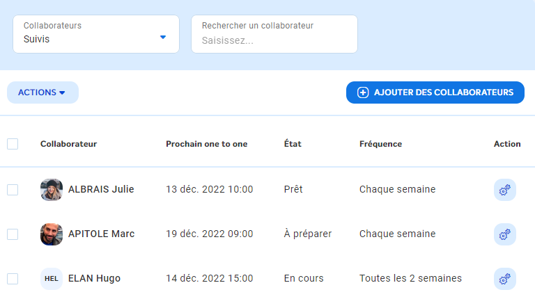 Collaborateurs, managers et ressources humaines ont un espace dédié à la préparation des entretiens. Le processus est clair et fait gagner du temps à toutes les parties prenantes. Les responsables RH passent enfin moins de temps à collecter les grilles d’entretien, et plus à analyser les résultats et mettre en place des actions !