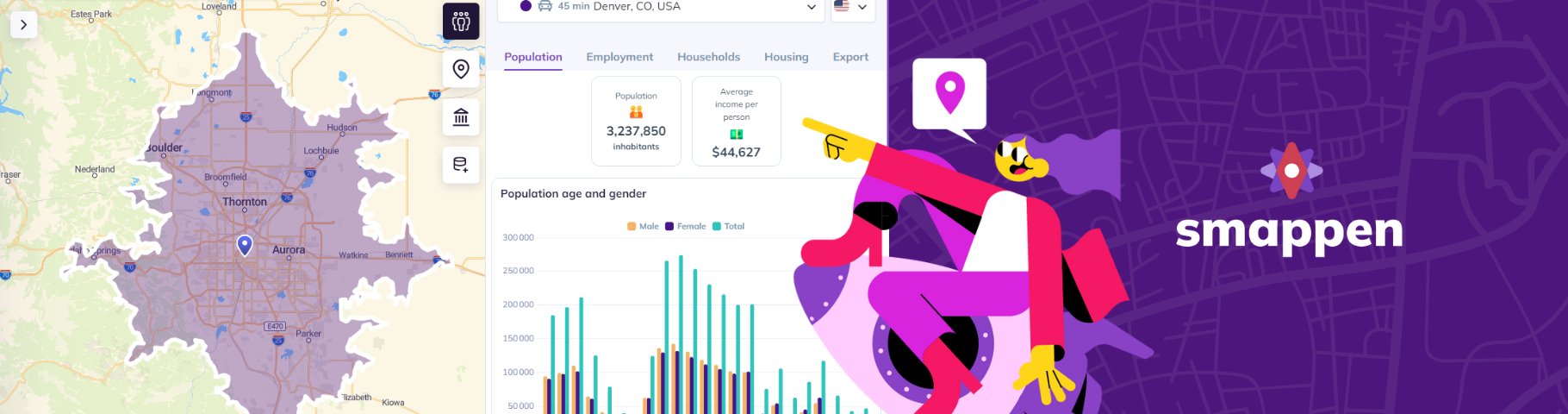 Smappen, l'application de géomarketing pour créer, gérer et analyser ses zones de chalandise.