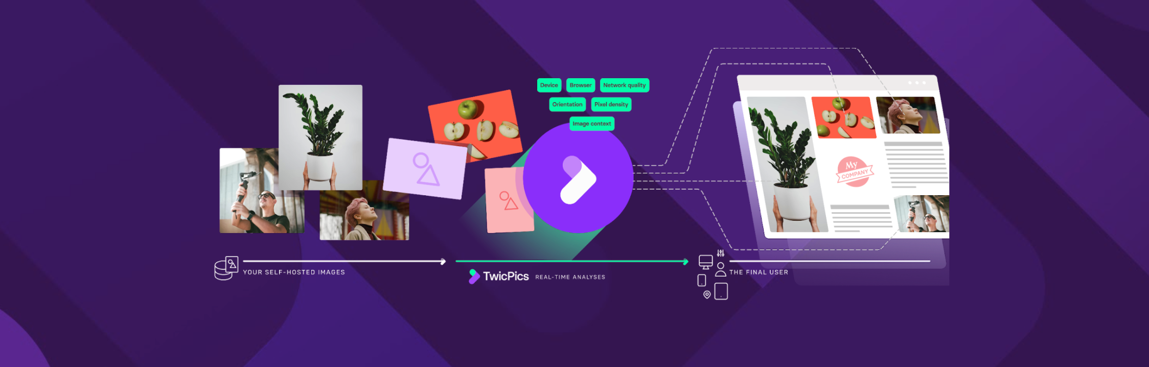 TwicPics garantit un redimensionnement, recadrage et compression en temps réel des médias, fournissant des visuels parfaitement adaptés à chaque écran et type de connexion.