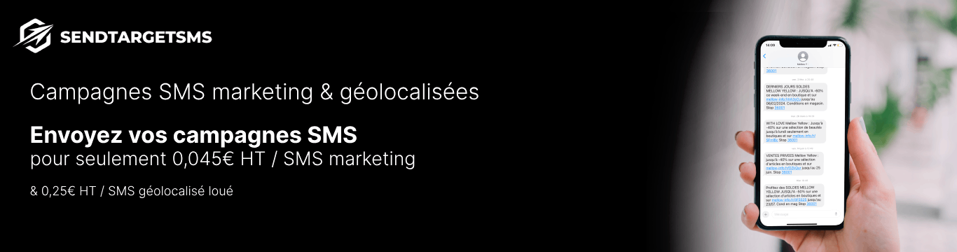 SendTargetSMS est une solution française professionnelle de marketing par SMS conçue pour répondre aux besoins des entreprises souhaitant réaliser des campagnes de SMS marketing (fidélisation), des campagnes de prospection par SMS (acquisition) ou encore effectuer des campagnes de SMS transactionnels (alerte SMS, rappel de rendez-vous, ...).