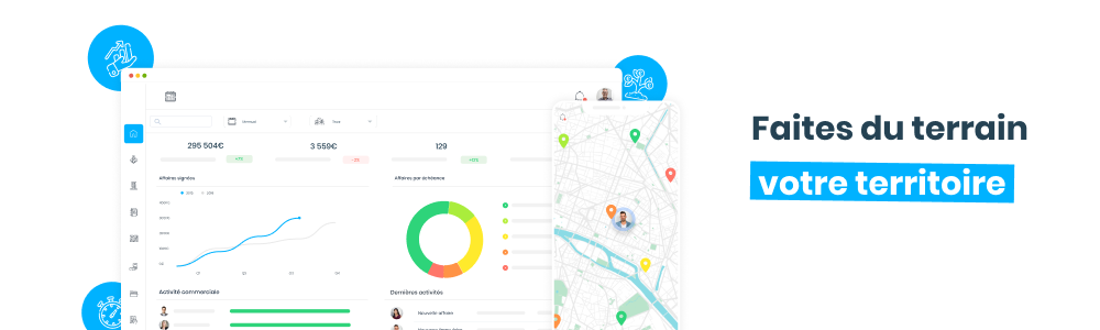- Décuplez leur efficacité avec les fonctionnalités de tableau de bord, la géolocalisation des prospects, le suivi des opportunités...