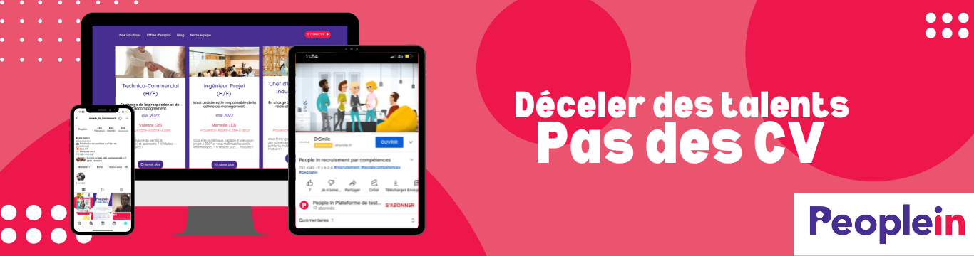 People In est un outil de recrutement innovant qui vous permet de présélectionner les candidats en s’appuyant sur l’évaluation des compétences clefs pour un poste, pour lequel vous avez, généralement, des recrutements récurrents. Cet outil permet aux entreprises clientes de recruter leurs talents sans avoir recours au CV et en se concentrant uniquement sur les savoir-faire et savoir-être.