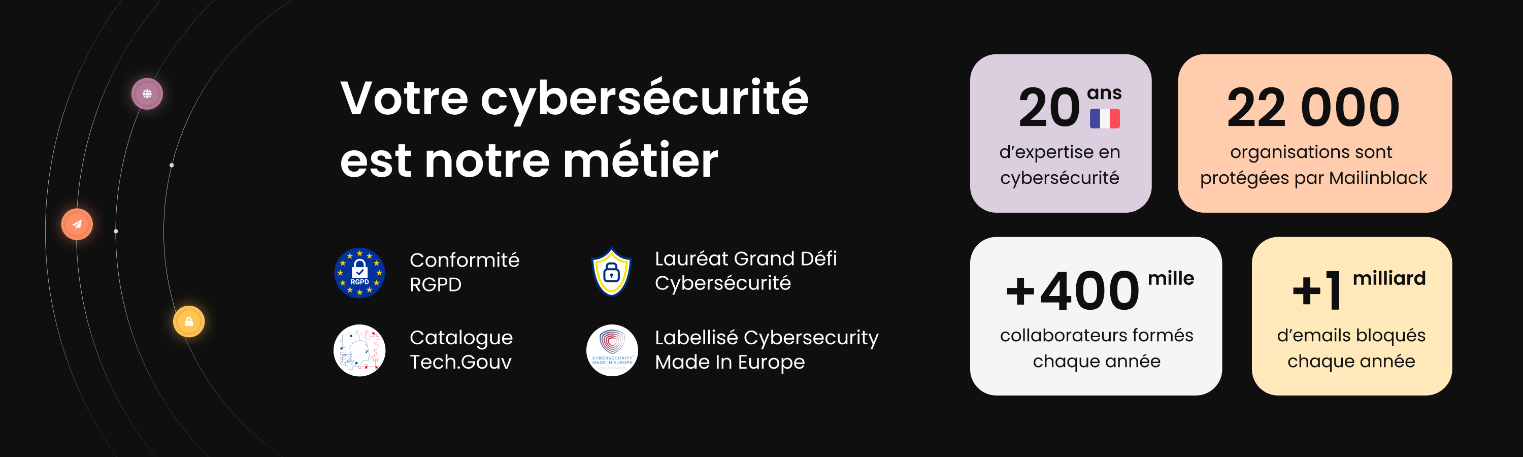 Mailinblack, leader français en cybersécurité, protège depuis plus de 22 ans les entreprises contre les cyberattaques. Nous concevons des solutions innovantes, performantes et accessibles en démocratisant des technologies jusque-là réservées aux grandes entreprises. Basées à Marseille, nos équipes conçoivent des solutions centrées sur l’expérience utilisateur, pensées pour répondre aux besoins des entreprises.