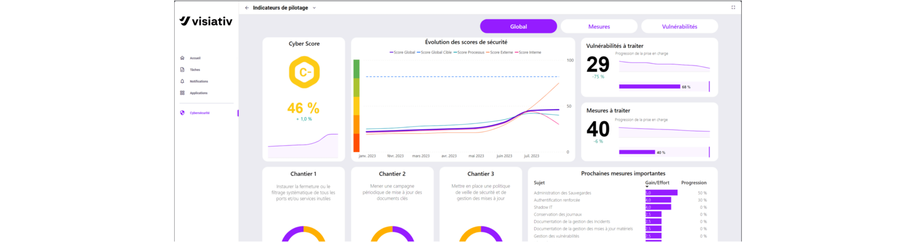- Pilotage centralisé : visualisation claire des risques et priorisation des actions à mener.