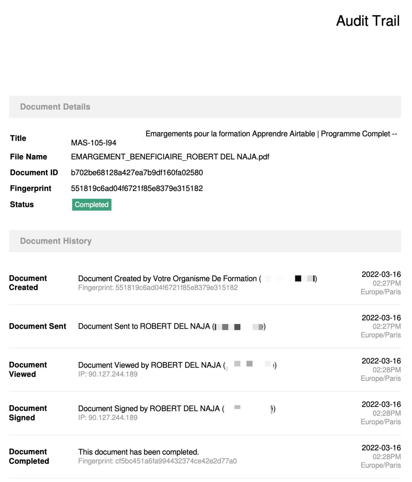 Les documents signés le sont électroniquement via un logiciel de signature électronique certifiée.